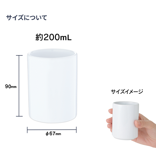 マグカップ類で大きく印刷したい方におすすめ!湯呑みは持ち手がない為、ぐるりとほぼ全周印刷出来ます。もちろんフルカラー印刷対応なので和テイストのキャラクターを印刷してみたり、組み合わせで夫婦湯呑にも早変わりする優れものです。インバウンド用のノベルティや物販、お土産屋さんでの即席オリジナル湯呑みとして観光の名産品にしてみても!ワンサイズ大きいMサイズもございます。