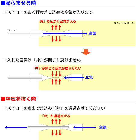 バルーンを膨らました後、差込口からストローを入れましたが空気が抜けません…。 |